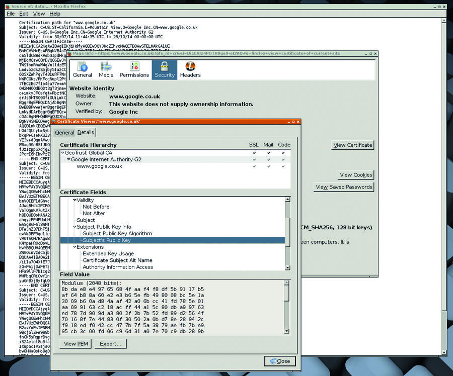 Firefox and the other major web browsers enable you to look inside a server’s certificate.